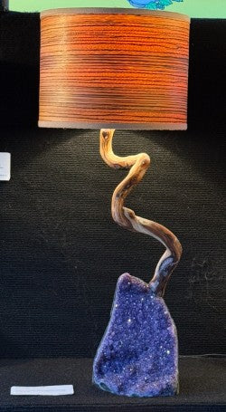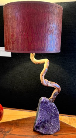 Brazilian chevron amethyst, Tahoe manzanita stem with inlaid red coral in natural features, zebrawood veneer or pommele makore shade. Additional custom shipping charges will be applied after receiving shipping address.