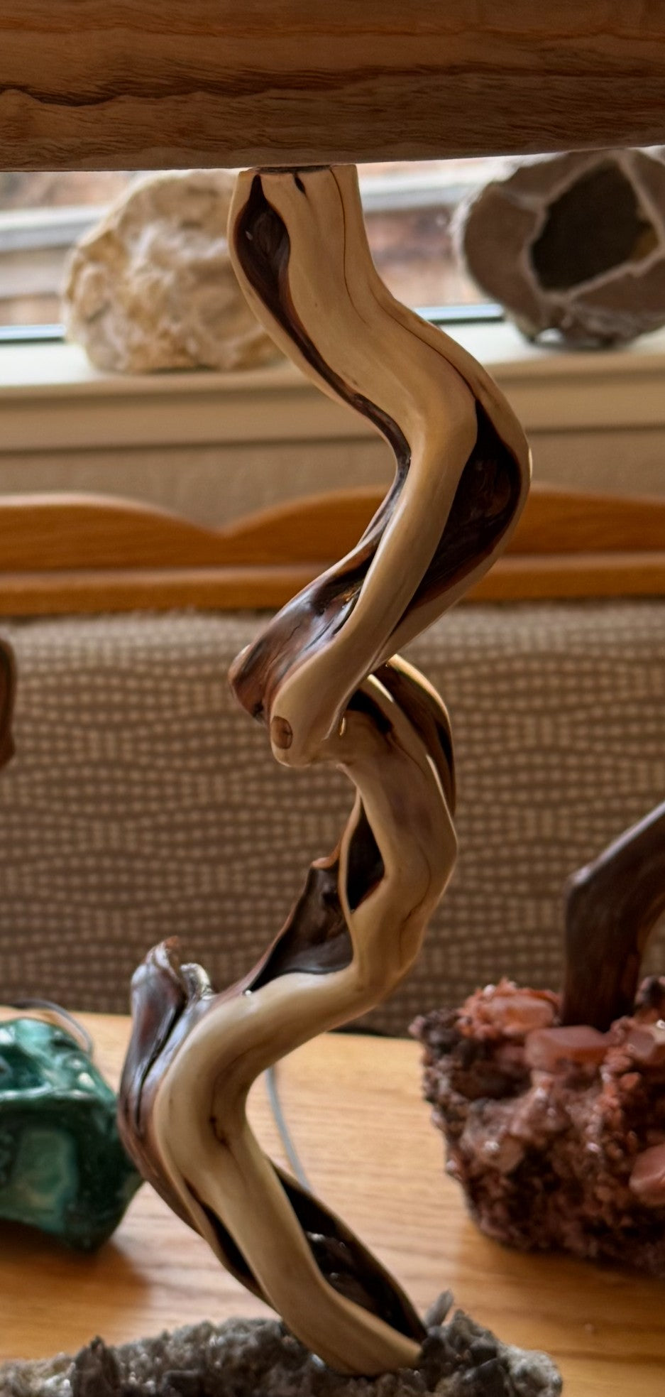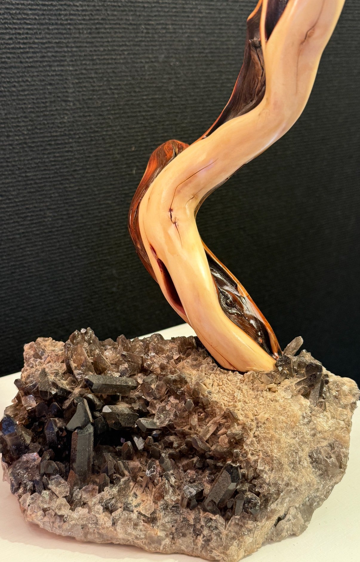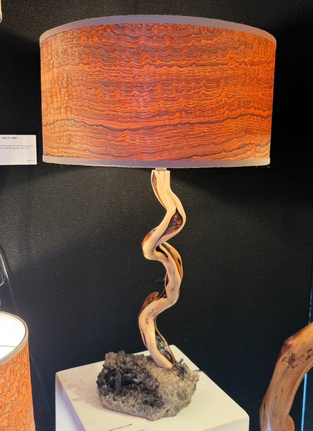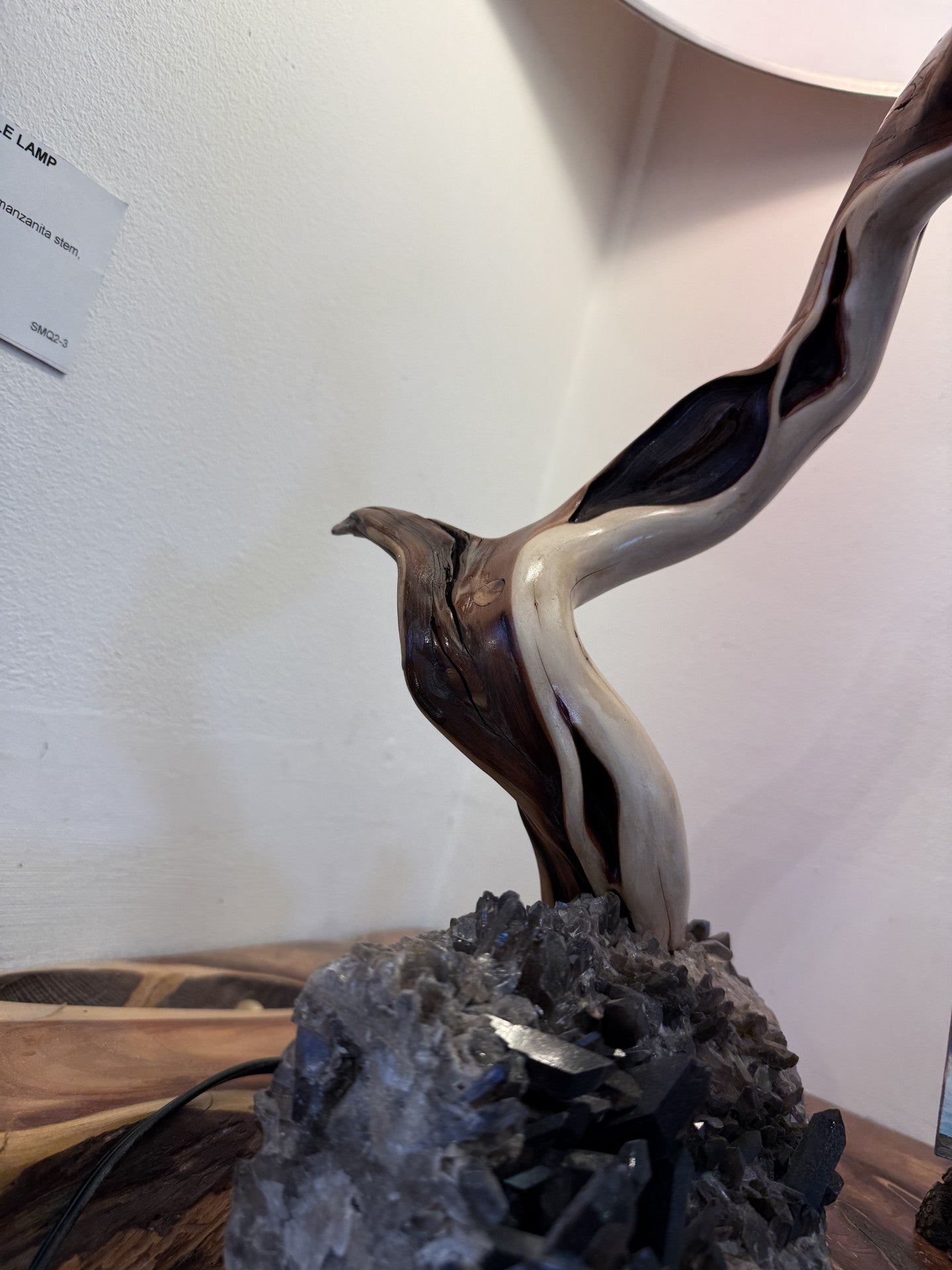 Brazilian smoky quartz, Tahoe manzanita stem, Japanese ash veneer shade. Additional custom shipping charges will be applied after receiving shipping address.